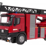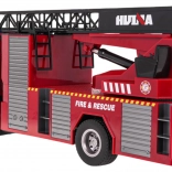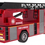 Ovo detaljno izrađeno daljinski upravljano vatrogasno vozilo napravljeno je od kvalitetne plastike i ima gumene gume s profilom za bolju trakciju. Zahvaljujući frekvenciji 2,4 GHz upravljanje je glatko i bez smetnji, pa možete lako manevrirati naprijed, natrag i u stranu. Platforma s rukom zakreće se izravno s upravljača, a teleskop se može podizati i spuštati.