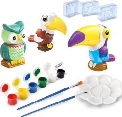 Otkrijte zabavan kreativni set za djecu s kojim ćete lako izraditi i ukrasiti vlastite 3D figurice egzotičnih ptica. Pakiranje sadrži kalupe, gips, boje, kistove i paletu – dovoljno je dodati vodu i početi stvarati. Ova aktivnost razvija finu motoriku, kreativnost i strpljenje, a rezultat su šarene sove, tukan i druge tropske ptice kao prekrasna dekoracija za sobu.