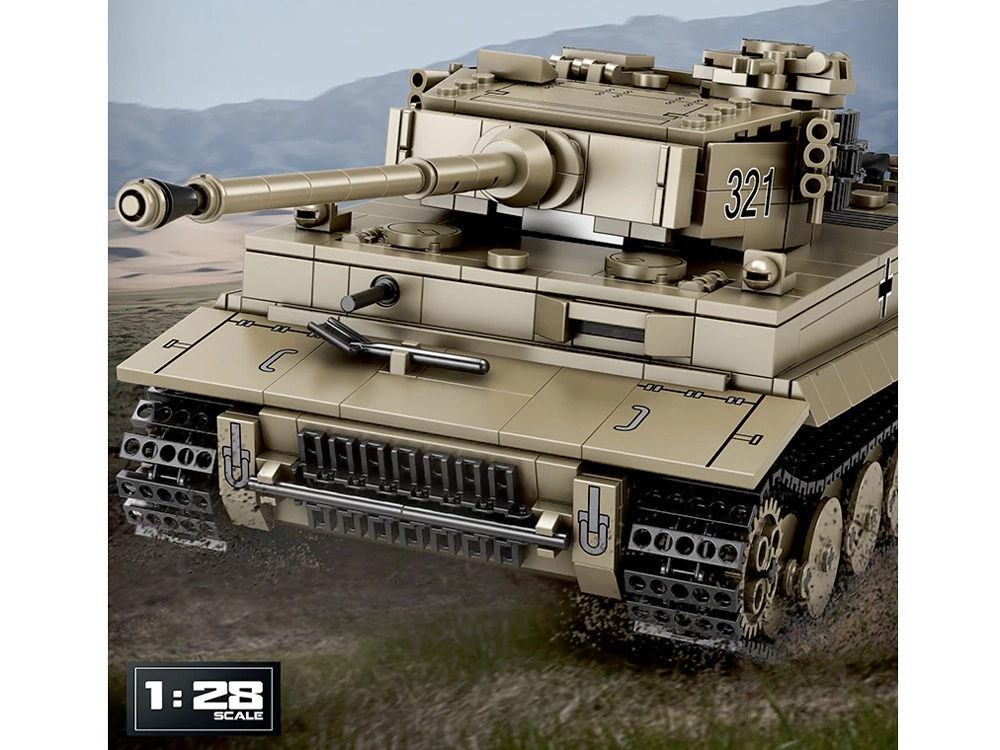 Sastavite legendarni tenk Tiger I s službenom licencom WORLD OF TANKS. Ovaj realistični konstrukcijski set u mjerilu 1:28 sadrži 1138 dijelova i nudi izvrsne detalje i funkcionalne elemente: okretna kupola, podesiva cijev, otvarajući poklopci i pokretne gusjenice. Idealno za entuzijaste vojne tehnike, povijesti II. svjetskog rata i kolekcionare.