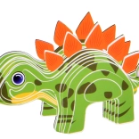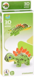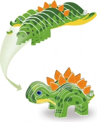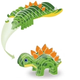 Kreativna 3D slagalica od kartona pretvara ravne dijelove u šarenog stegosaurusa s jarko narančastim pločama na leđima. Dijelove je dovoljno izvaditi i sastaviti prema jednostavnom postupku na pakiranju – bez škara i ljepila.