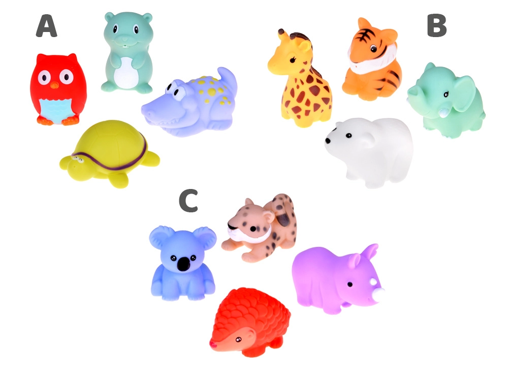 Set šarenih životinjica za kupanje donosi djeci puno smijeha i senzoričkih poticaja pri igri u kadi, bazenu i izvan vode. Mekane i ugodne na dodir podupiru razvoj fine motorike, koordinaciju oko–ruka te prirodno potiču maštu osmišljavanjem priča sa safarija ili polarnih krajeva.