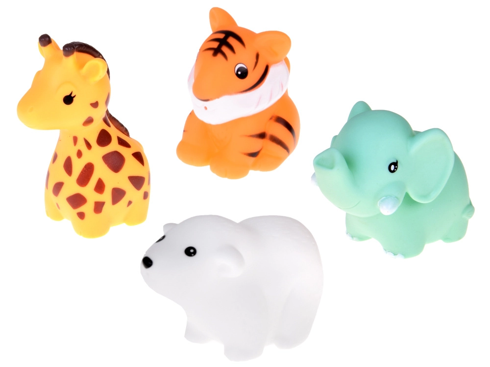4 kom gumene životinjice (npr. žirafa, tigar, slon, nosorog / krokodil, kornjača, sova – motiv se može razlikovati)