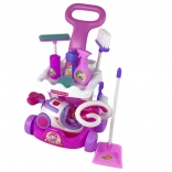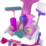 Kolica na kotačima s ručkom i policama drže sve potrepštine uredno organizirane. Djeca kroz igru uče ispravne tehnike čišćenja i razvijaju finu motoriku, koordinaciju i odgovornost.