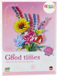 Izradite vlastitu elegantnu cvjetnu dekoraciju od seta s 539 dijelova. Šarena kompozicija sa suncokretom, ružama, lavandom i božurom nudi vjernu razradu detalja, kreativnu zabavu i stilski ukras interijera. Gotov buket visok je približno 26,5 cm i odlično će ukrasiti svaku policu ili radni stol.