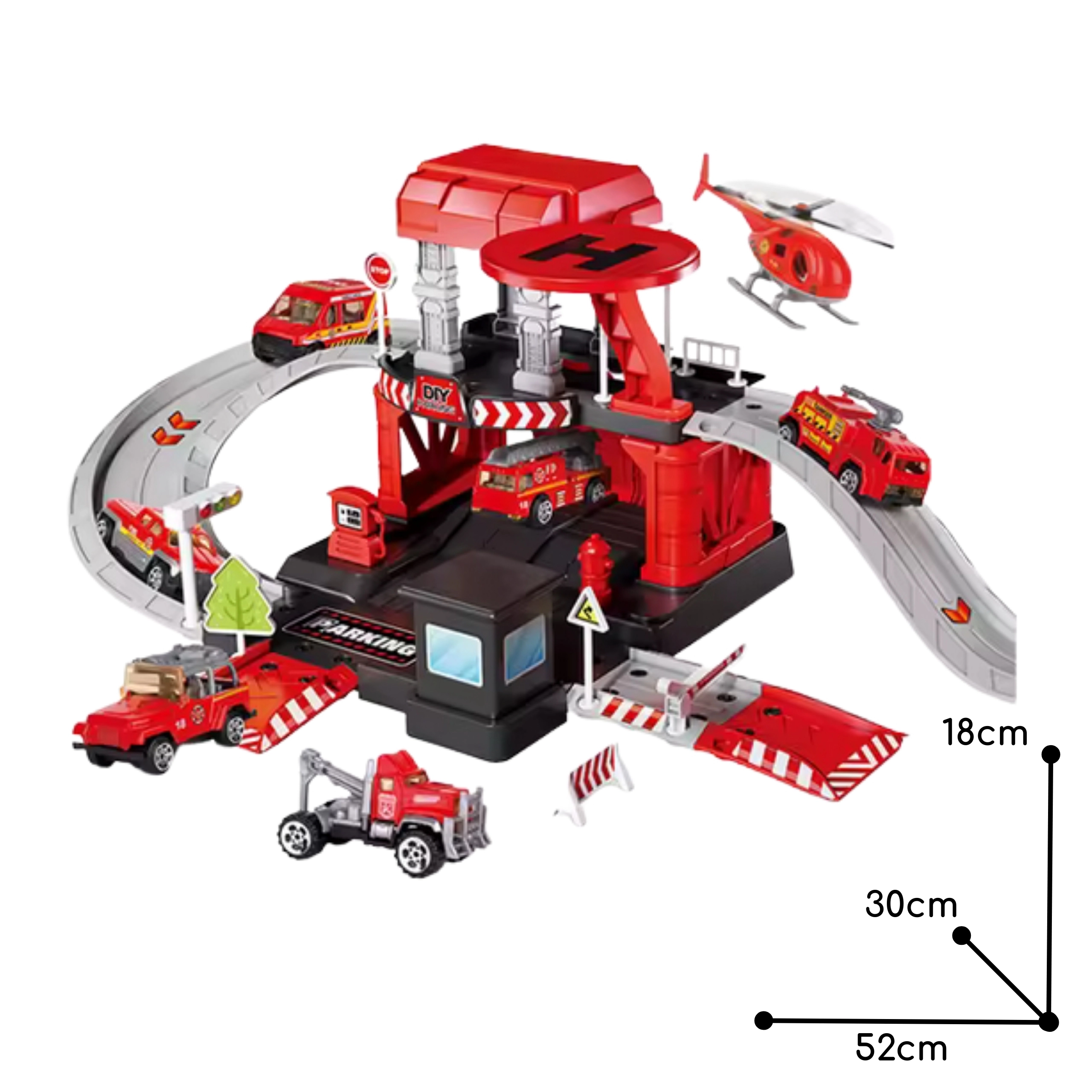 Djeca će uživati u 43 dijela, uključujući znakove, rampe, semafore, benzinsku postaju i kućicu čuvara. Set potiče finu motoriku, logičko razmišljanje i razvoj mašte kroz igru uloga malih vatrogasaca.