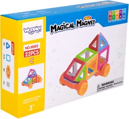 Magnetska građevna set WOOPIE djeci na razigran način približava osnove geometrije i magnetizma. Prozirni, živo obojeni dijelovi glatko se spajaju i omogućuju stvaranje trodimenzionalnih kućica, tornjeva i pokretnih vozila. Zahvaljujući čvrstoj magnetskoj vezi konstrukcije su stabilne, a ipak se mogu brzo preraditi i tako poticati maštu.