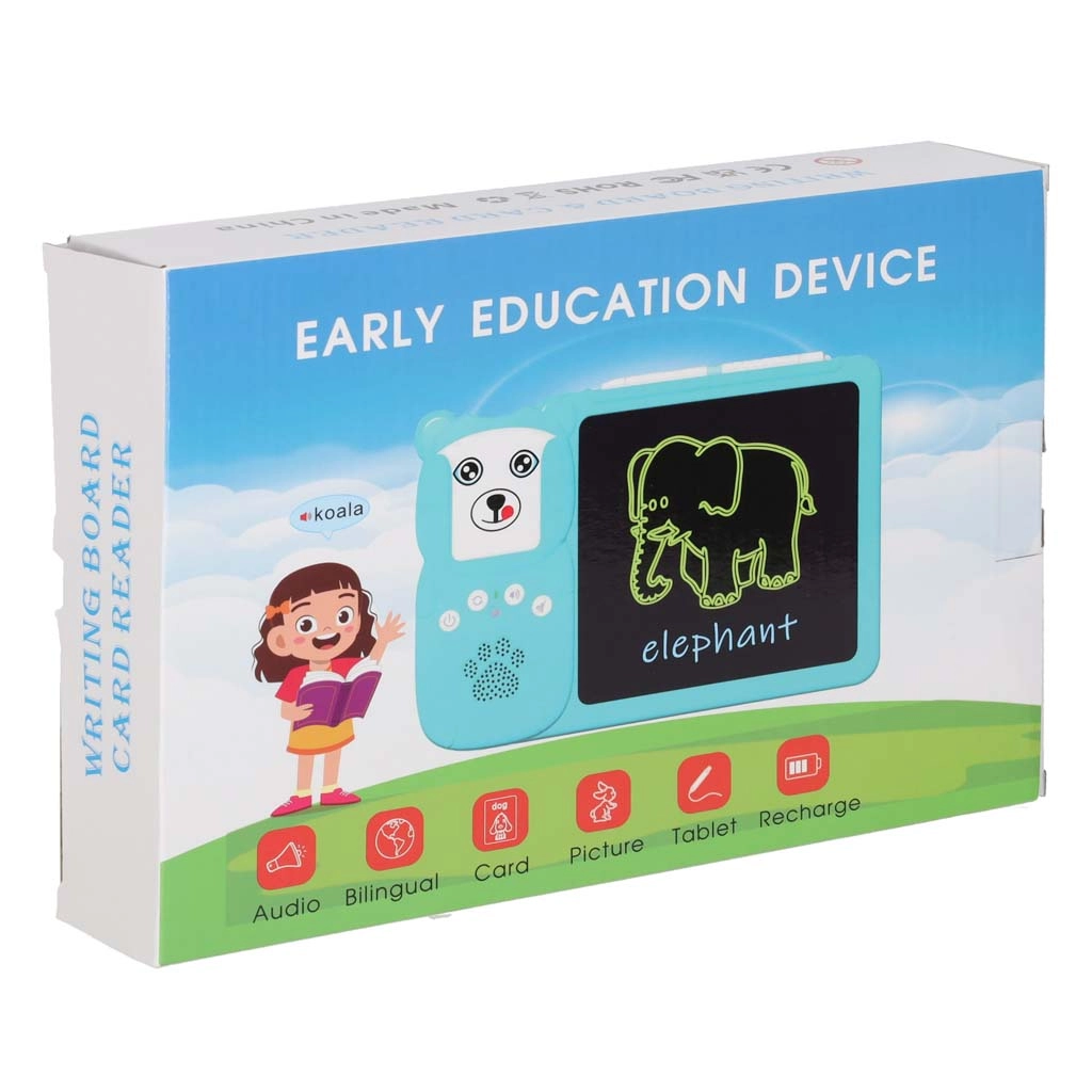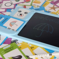 Interaktivni čitač s LCD pločom razvija rječnik, izgovor i finu motoriku. Dovoljno je umetnuti karticu i uređaj će reproducirati ispravan izgovor engleske riječi – odabrane kategorije (životinje, vozila) dopunjene su zabavnim zvučnim efektima. Na 8" LCD zaslonu djeca istovremeno vježbaju pisanje, crtanje i bilješke pomoću priložene olovke.