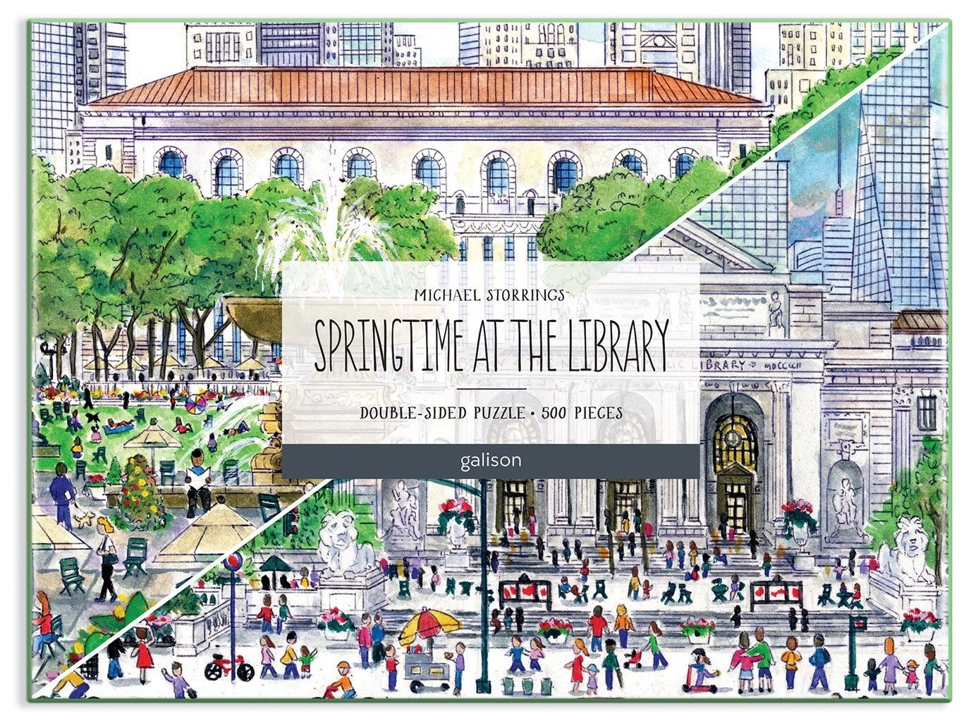 Dvostrana slagalica GALISON „Springtime at the Library” donosi jedinstveno iskustvo: na jednoj strani nalazi se živa gradska scena s fontanom i parkom, na drugoj ikonična knjižnica i užurbana okolica. Zahvaljujući dvostrukom motivu dobivate dvostruku dozu slaganja i veću mogućnost ponovnog igranja.