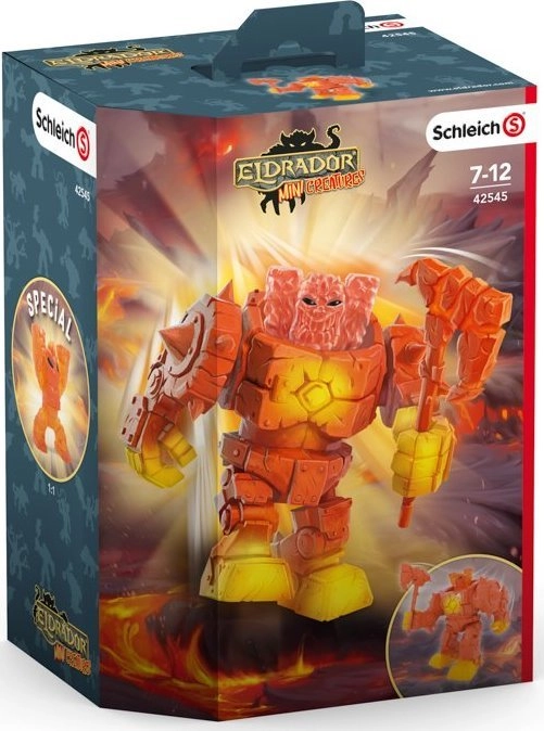 Super snažni laveni robot iz kolekcije SCHLEICH Eldrador Mini Creatures stvoren je za akciju. Zahvaljujući pokretnim rukama i izmjenjivoj lavnoj sjekiri može „razbiti“ zaleđene stijene, ukrotiti lavene tokove i suprotstaviti se neprijateljima iz svih kutaka Eldradora. U upravljačkom centru može sjediti mini stvorenje – laveni lord, koje je u ovom setu dostupno isključivo.