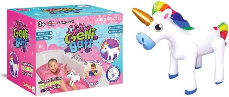 150 g Gelli (16 vrećica), ružičasti sjaj, 150 g sredstva za čišćenje/otapanje, napuhavajući jednorog 30 cm