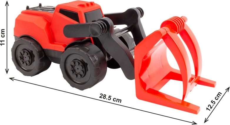 Otkrijte gradilišnu zabavu s traktorom s hvataljkom duljine 28 cm. Veliki kotači, slobodni pogon i pokretna prednja ruka s hvataljkom omogućuju djeci skupljanje, prenošenje i istovarivanje malih predmeta te igru kao na pravom gradilištu.