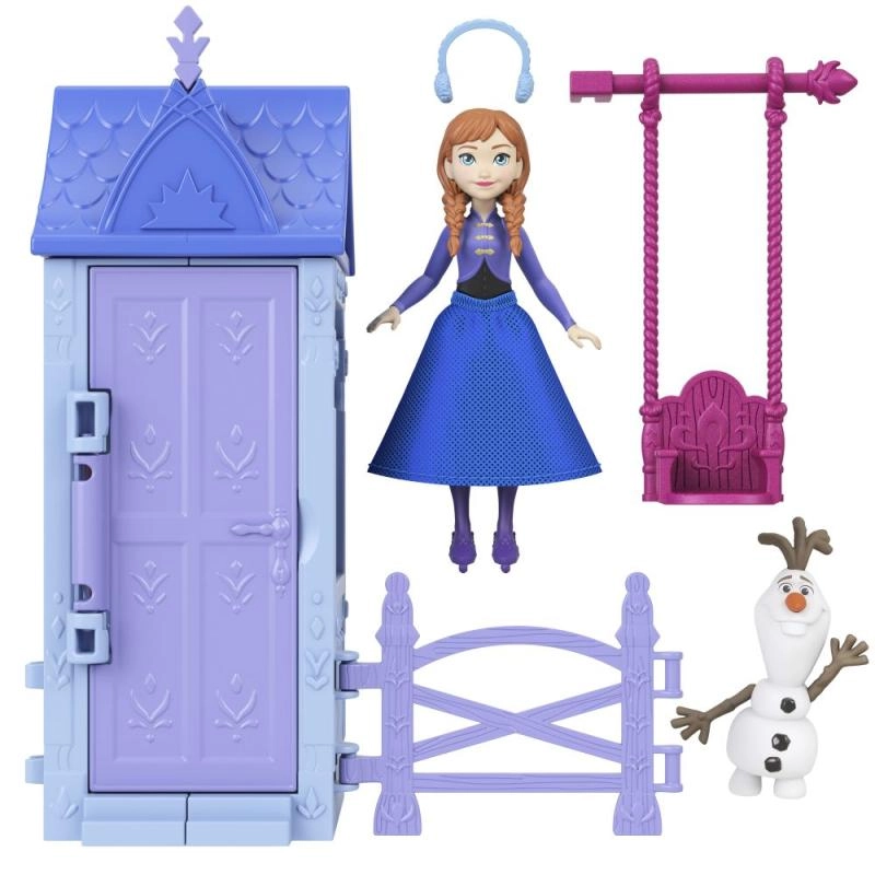 Varijanta s lutkicom ANNA nudi otvarajuća vrata i funkcionalnu ljuljačku za zabavne scene s OLAFOM. Odlično za pričanje priča i maštovitu igru.