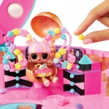 Središnja rotirajuća platforma i sklopivi dijelovi pretvaraju salon u mini pozornicu za predstavljanje novih frizura i odjevnih kombinacija tvoje L.O.L. lutke.