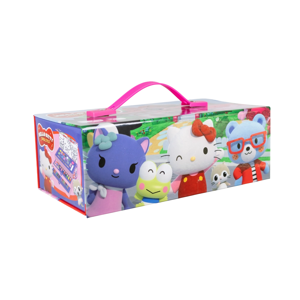 Otkrijte sladak i praktičan HELLO KITTY kreativni set, prepun svega što trebaju djeca i početnici u stvaranju. Trokatna izvedba nudi bogat set likovne opreme za crtanje, slikanje i pisanje – od vodenih boja do bojica. Sjajan izbor za kućno stvaranje, školu i putovanja.