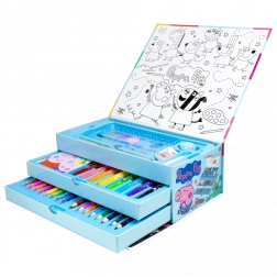 Otkrijte kreativni Peppa Pig box pun likovnih potrepština za male umjetnike. Praktičan trokatni box nudi sve što djeci treba za stvaranje – od vodene boje i palete do flomastera, bojica i olovaka. Sjajan odabir za kućno stvaranje, školu i kao poklon.