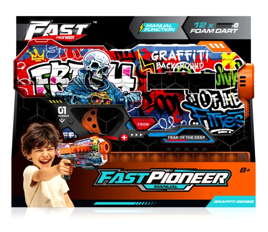 Ručni pištolj Fast Pioneer donosi pouzdanu i sigurnu akcijsku zabavu za djecu i početnike. Zahvaljujući mehanizmu na povlačenje ne zahtijeva baterije, pa je uvijek spreman za akciju. Pjenasti meci nježni su prema namještaju i sigurni za igru s prijateljima.