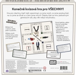 Doživite napeti kviz-duel kroz vrijeme! Ova jedinstvena kviz igra za 2 ili više igrača provjerit će vaše znanje iz gotovo posljednjih sto godina. Pitanja su podijeljena u četiri razdoblja – Boomeri, Generacija X, Milenijalci, Generacija Z – i fokusiraju se na povijest, kulturu, oglašavanje, modu i trendove. Igra se pojedinačno ili u timovima, a karte Izazov testiraju vašu domišljatost i vještine. Idealna obiteljska i party igra za 20–60 minuta, od 10 godina naviše. Samo za češko tržište.
