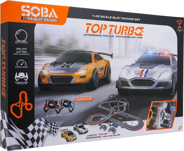 Složite vlastiti trkaći krug s dvostrukim petljama i povišenim dionicama, gdje odlučuju brzina i preciznost. Staza TOP TURBO XXL osmišljena je za djecu od 8 godina i starije te za odrasle entuzijaste, a nudi glatku kontrolu brzine, svjetla u autićima i zvukove motora za još realističniji doživljaj.