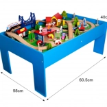 Ova mega drvena željeznička pruga na stoliću promišljeno je igraće rješenje koje drži tračnice i dodatke pregledno na jednom mjestu. Robustni drveni stol s povišenim rubovima i otiskom cesta na ploči potiče kreativnu igru i razvoj fine motorike. Set je izrađen u živim, atraktivnim bojama, ima oble oblike bez oštrih rubova i može se dodatno proširivati dodatnim elementima.