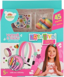 Napravite originalne obruče za kosu točno po svom ukusu. Set sadrži tri osnovna obruča i bogat izbor dekoracija, zahvaljujući kojima nastaju jedinstvene kombinacije – od šarenih i razigranih do suptilnih i nježnih. Jednostavan postupak mogu savladati i mlađa djeca, koja će tijekom izrade uvježbavati strpljenje i finu motoriku.