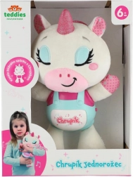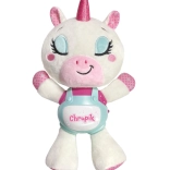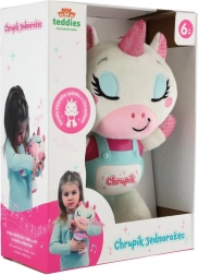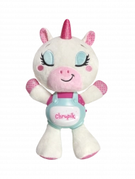 Priredite djeci mirne večeri s pomagačem za spavanje jednorogom Chrupíkom. Mekani plišani prijatelj s ugrađenim plastičnim panelom nudi nježno svjetlo i umirujuće melodije koje stvaraju ugodnu atmosferu pri uspavljivanju. Jednostavno upravljanje jednim gumbom lako je i roditeljima jednom rukom.