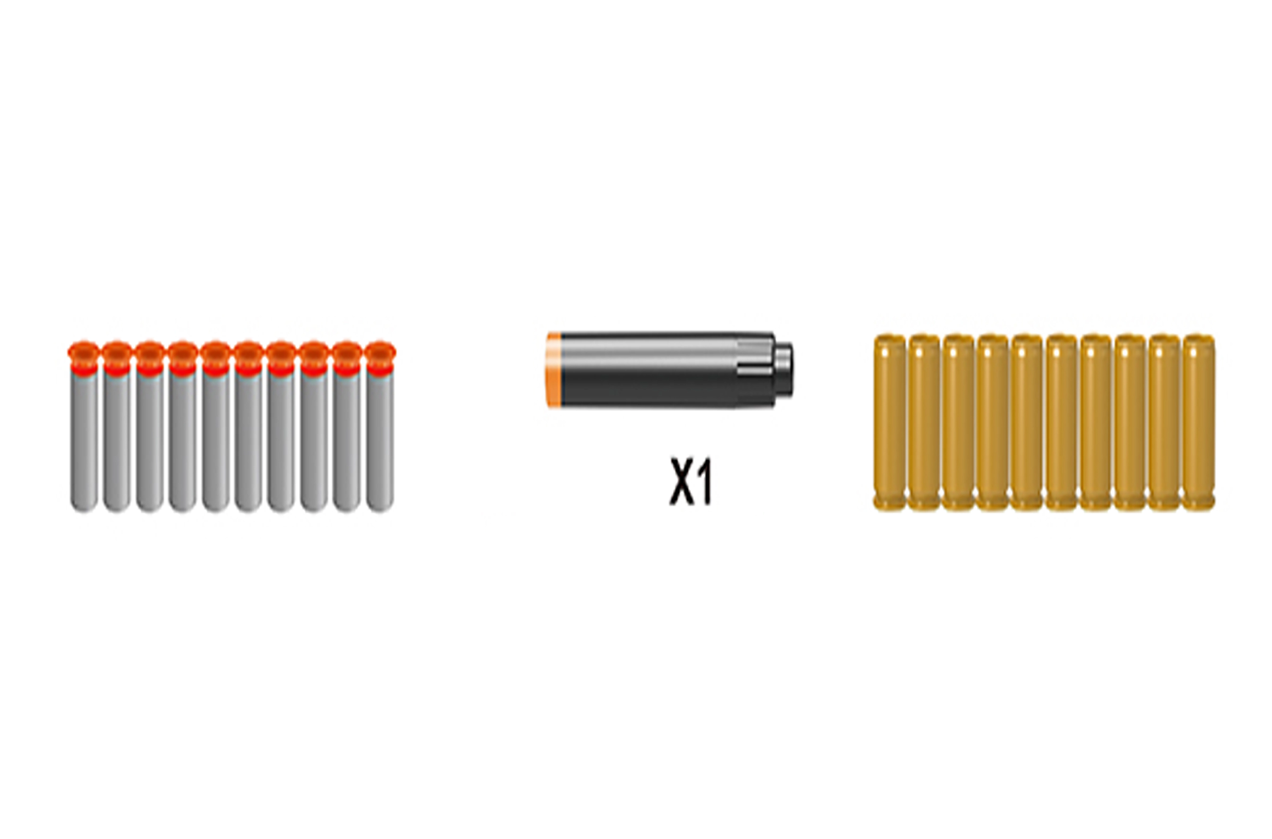 U pakiranju je sve za trenutnu zabavu: stalak za stabilno ciljanje, prigušivač i podesivi nišan. Pjenasti meci su nježni i pogodni za interijer i eksterijer. Patrone daju igri autentičnost, a djeca mogu isprobati punjenje i gađanje u sigurnoj varijanti.