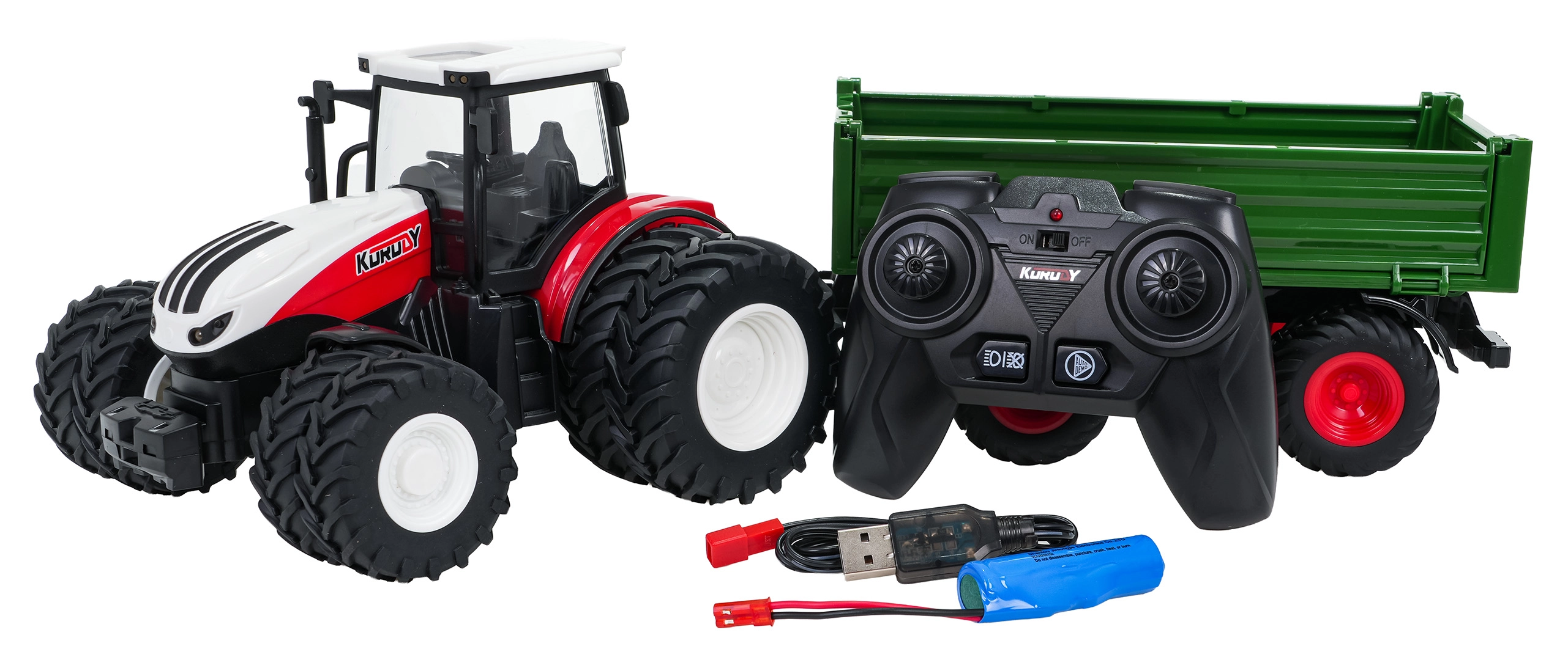 Ovaj zabavan i izdržljiv RC traktor idealan je za male farmere. Zahvaljujući frekvenciji 2,4 GHz upravljanje je glatko i na većoj udaljenosti, a veliki gumeni kotači osiguravaju dobar zahvat na različitim podlogama. Osvjetljenje kabine i prednjih svjetala povećava dojam realističnosti i vidljivosti tijekom igre.