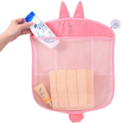 Praktičan viseći organizator za kupaonicu drži sve dječje igračke pregledno na jednom mjestu. Zahvaljujući mrežastom materijalu brzo se suši, sprječava nastanak plijesni i neugodnih mirisa, a veseli životinjski motiv motivira djecu na pospremanje. Montaža je jednostavna zahvaljujući dvjema vakuumskim čašicama na glatku površinu.