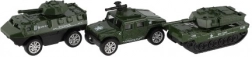 Set sadrži 12 vojnih vozila u mjerilu 1:60, koja osiguravaju sate zabave za djecu. Većina je proizvedena u kombinaciji metala i plastike, što osigurava dugu trajnost i izdržljivost. Idealna je za djecu koja vole istraživati različite vojne scenarije i strateške igre.