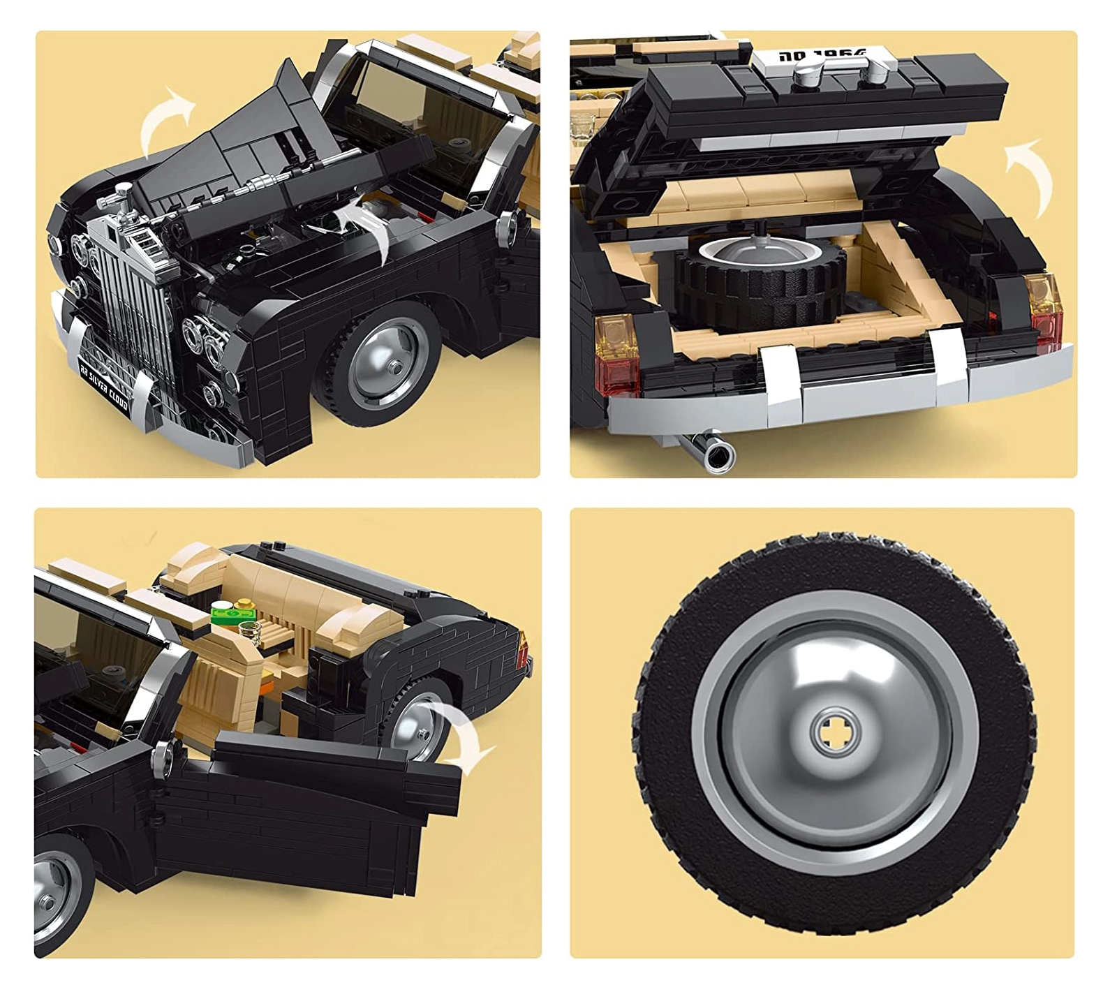 Ovaj profinjeni model klasičnog kabrioleta ističe se kromiranim detaljima, autentičnom unutrašnjošću i precizno oblikovanom karoserijom. Set nudi sjajno iskustvo slaganja i izlaganja – vozilo se može kotrljati na kotačima, otvarati vrata, hauba i prtljažnik te se mogu promatrati promišljena rješenja kokpita.