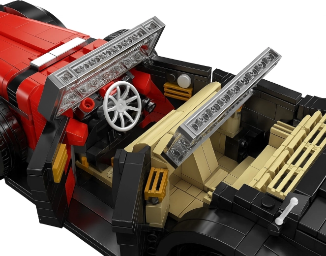 Zahvaljujući uklonjivom krovu lako ćete pretvoriti kupe u kabriolet, otvarajuća vrata i poklopac motora otkrivaju dodatne realistične detalje. Gumene gume, izraženi blatobrani i svjetla naglašavaju autentičan izgled. Set je prikladan za stariju djecu i odrasle koji cijene spoj zabave u sastavljanju i dekorativne vrijednosti gotovog modela.
