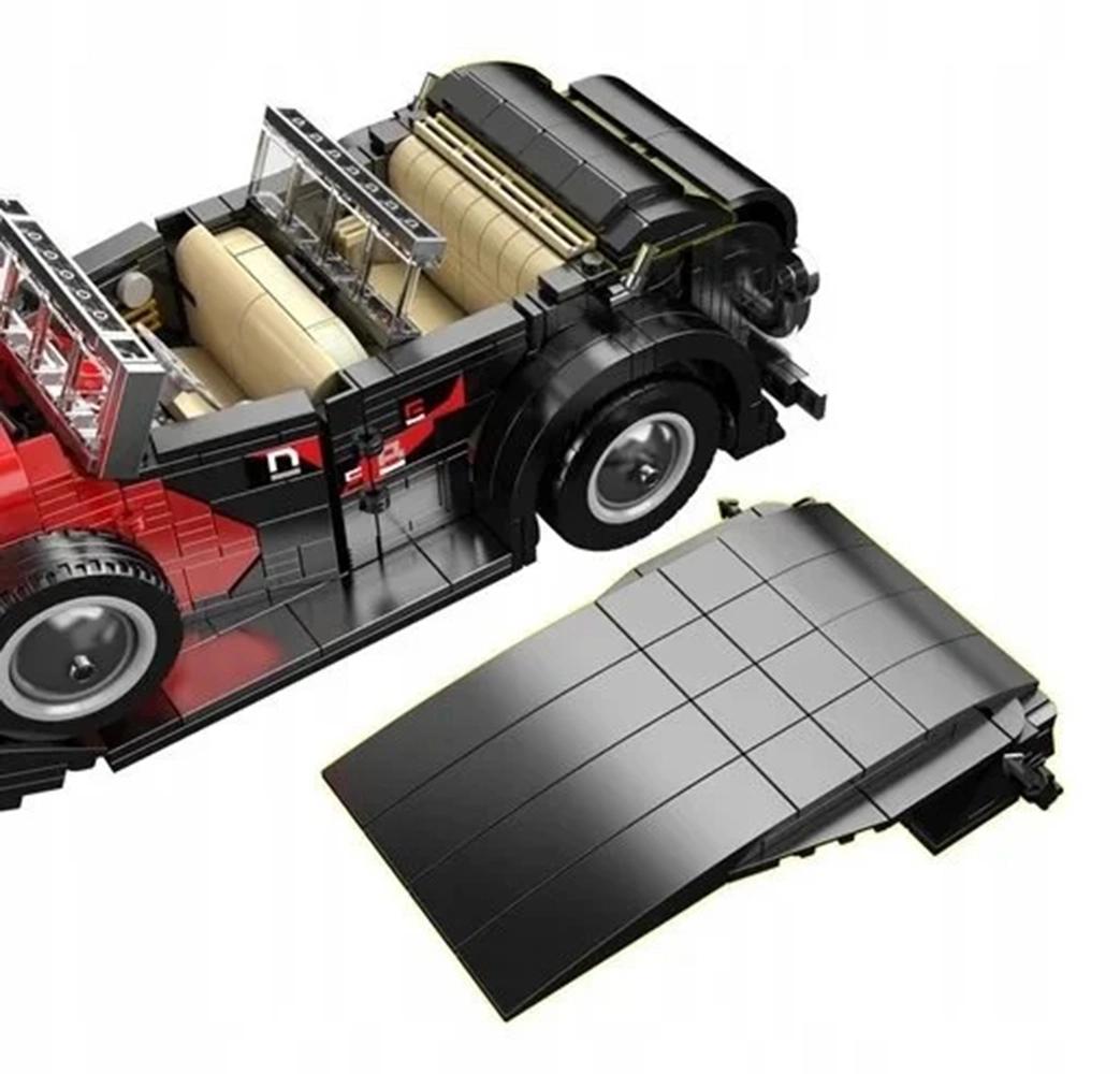 Ovaj detaljan model povijesnog vozila u elegantnoj crno-crvenoj kombinaciji oduševit će svakog ljubitelja klasičnih automobila i konstruktorskih setova. Robusna konstrukcija, vjerna silueta i promišljeni elementi interijera i eksterijera jamče atraktivnu gradnju i dojmljiv izložbeni komad.
