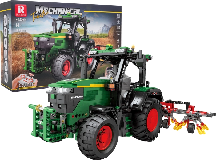Sastavite realističan zeleni traktor od 1664 dijela i uživajte u vožnji na daljinsko upravljanje. Model nudi dualno upravljanje (2,4 GHz upravljač + mobilna aplikacija), snažne motore, prednja LED svjetla i funkcionalni poljoprivredni priključak s podizanjem i naginjanjem. Idealno za entuzijaste tehničkih konstruktor setova od 14 godina naviše.
