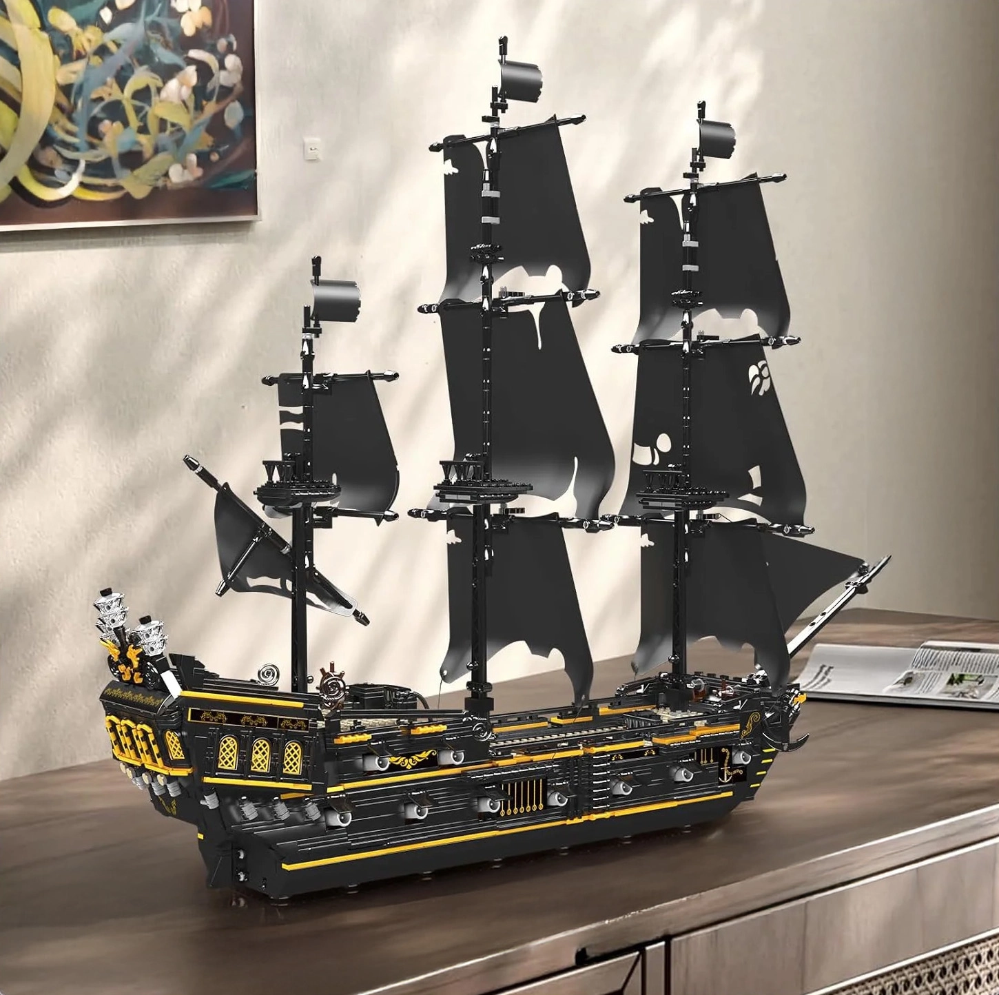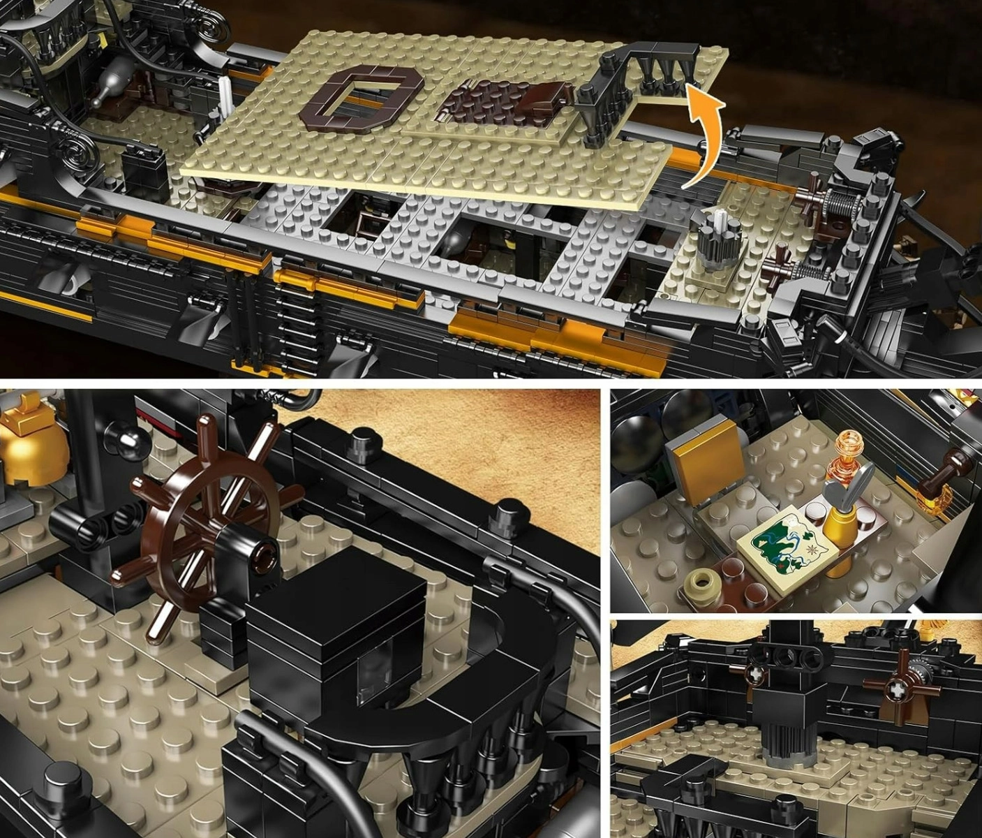 Ovaj veliki set za slaganje gusarskog broda razveselit će svakog ljubitelja zahtjevne gradnje i morskih modela. Od 3180 precizno izrađenih dijelova sastavit ćete dojmljiv crni brod s mnoštvom autentičnih detalja koji će se istaknuti i na polici i u igri.