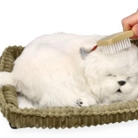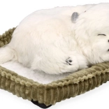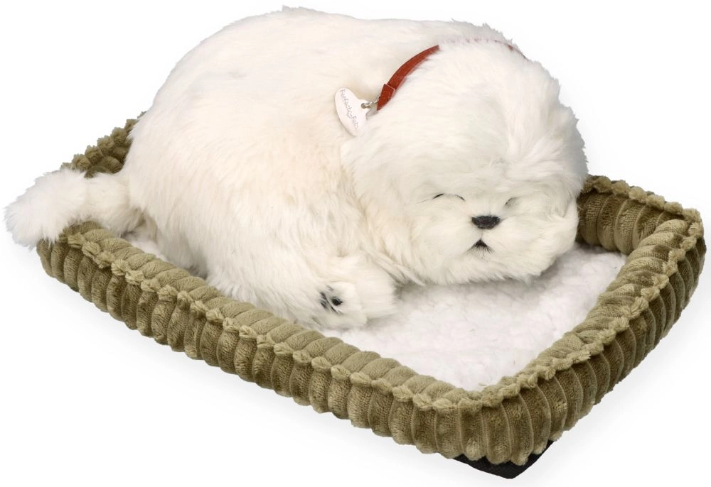 Ovo spavajuće malteško štene u mekanom krevetiću djeluje iznenađujuće živo. Njegovo mekano plišano krzno, nježni detalji i prirodan položaj stvaraju ugodnu, umirujuću atmosferu u dječjoj sobi i dnevnom boravku. Sjajan izbor za male ljubitelje životinja koji žele doživjeti radost „psića“, ali bez briga.