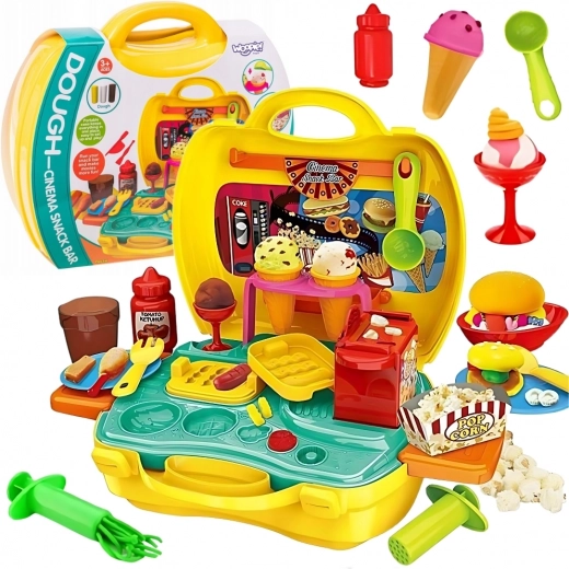 Dječji set brenda WOOPIE pretvara igru u snack bar i zabavnu avanturu. U kompaktom koferčiću pronaći ćete bogat set dodataka, mekani netoksični plastelin i kalupe za kokice, pomfrit, hot dogove, hamburgere i sladoled. Zahvaljujući jednostavnoj upotrebi i sigurnim materijalima razvija kreativnost, finu motoriku i maštu djece od 3 godine.