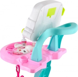 Lagana dvoetažna kolica s ručkom i kotačićima omogućuju djeci lako premještanje alata po “ordinaciji”. Kuke i umetnute posudice drže sve pregledno na mjestu.