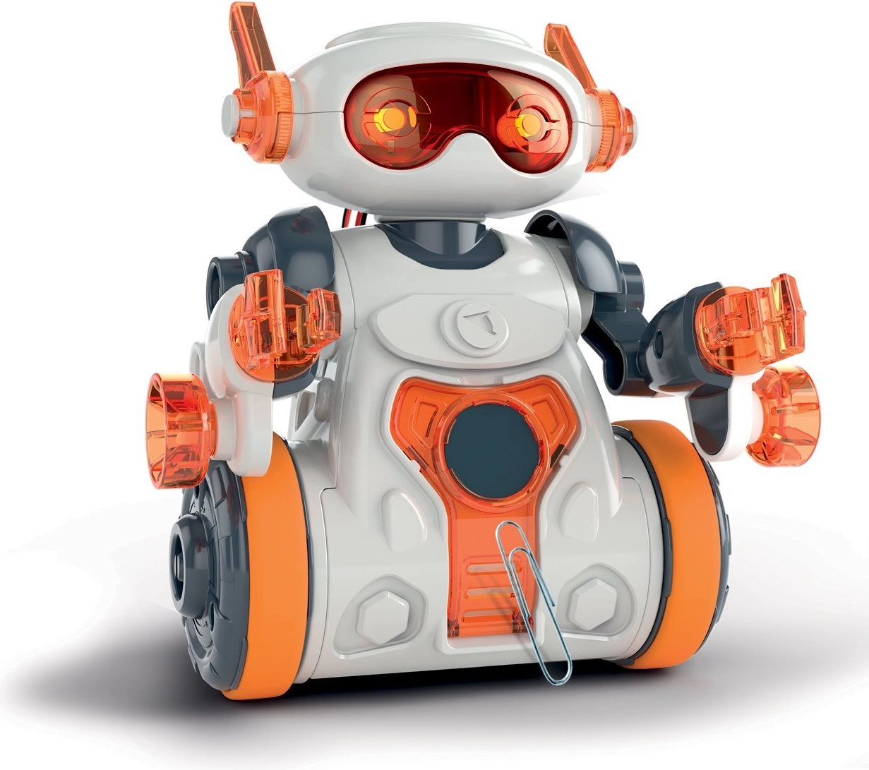 Sastavite vlastitog robota i otkrijte svijet programiranja s robotom Mio 2025 od CLEMENTONI. Zahvaljujući IR senzorima, upravljanju pljeskanjem, programiranju rute i besplatnoj aplikaciji nudi zabavu i učenje u jednom. Može slijediti ruku, izbjegavati prepreke, crtati i pomoću magnetnog držača tražiti sitne metalne predmete.