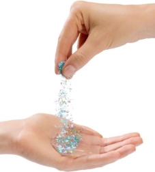 Stvori savršen blistav efekt zahvaljujući prozirnom slimeu i četirima vrstama šljokica. Miješaj, kombiniraj i prilagodi izgled lutke za svaki dan.
