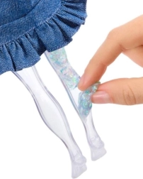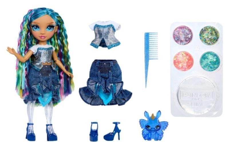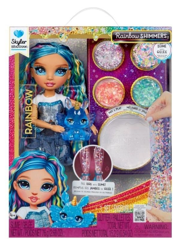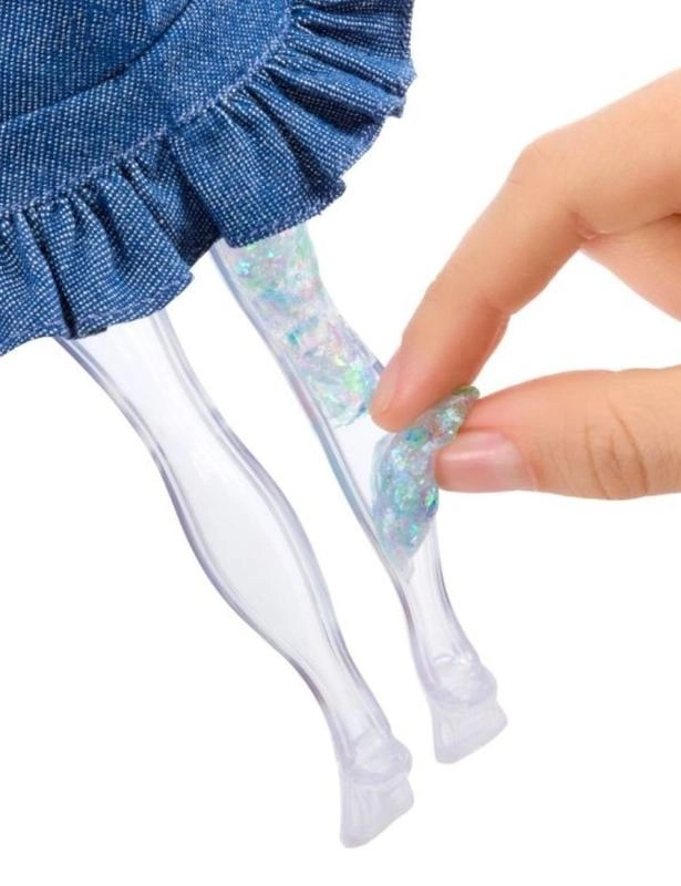 Lutka RAINBOW HIGH Skyler donosi potpuno nov način igre – spoj mode, slimea i šljokica. Napravi vlastitu blistavu mješavinu, dodaj je u prozirne noge lutke i promatraj transformaciju. Punjenje je brzo i jednostavno: skini stražnji dio nogu, umetni slime, zakopčaj i možeš se odmah igrati. A najbolje je što cijeli proces možeš ponavljati iznova i iznova.