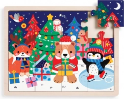 Dječje drvene slagalice MUDPUPPY donose čarobnu blagdansku atmosferu s motivom veselih životinja, darova i okićenih borova. Veliki i ugodno “puni” dijelovi lako stanu u male ručice i slažu se izravno u izdržljivi drveni pladanj, pa se nijedan dio ne izgubi.