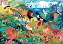 Uronite u svijet životinja – od veličanstvenih lavova do razigranih klokana. Složena slagalica dimenzija 58 × 41 cm donosi djeci radost otkrivanja te istovremeno potiče koncentraciju, strpljenje i prostornu maštu. Praktična kutija s prikazom gotovog motiva idealna je za sigurno pohranjivanje svih dijelova.