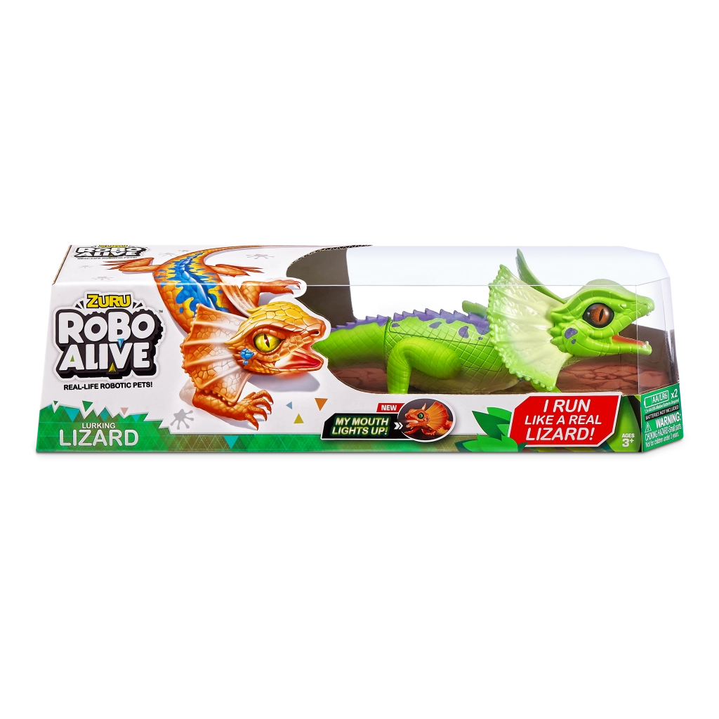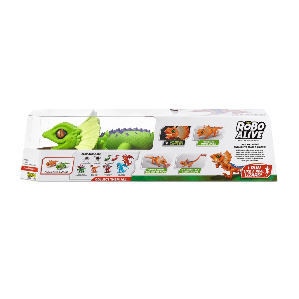 Robotska gušterica ROBO ALIVE donosi djeci akcijsku igru punu pokreta. Zahvaljujući motornom pogonu i promišljenoj konstrukciji savladava brzo trčanje, glatko okretanje glave i stabilan korak. Realistična tekstura ljuski, frill (vratni ovratnik) i izražene boje daju igrački autentičan izgled.