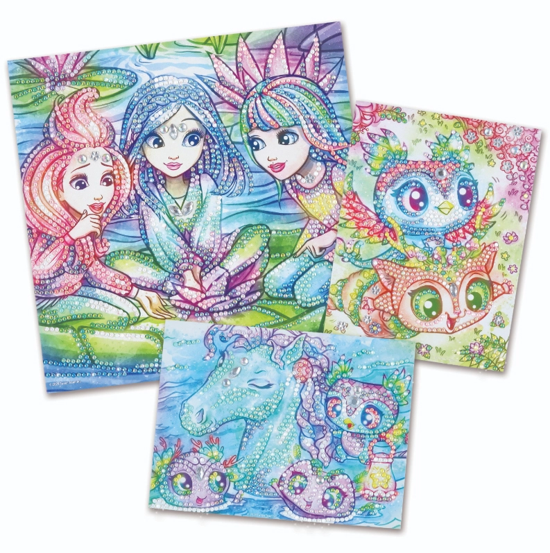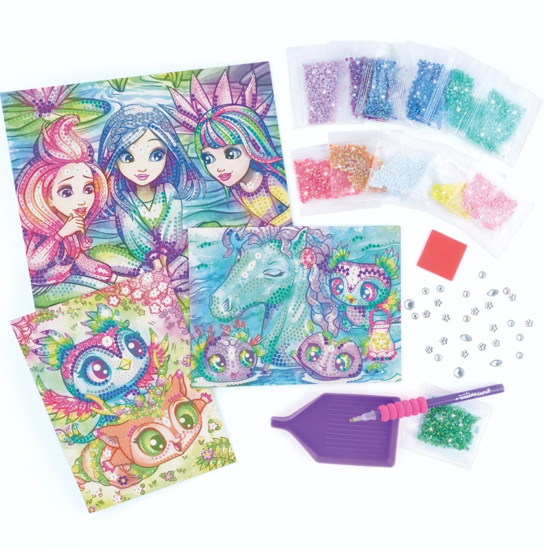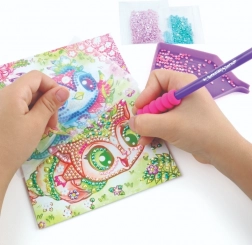 U pakiranju ćeš pronaći kompletnu opremu: aplikator za kamenčiće, 3 platna s predloškom, cca 4500 kamenčića, pretinac za sortiranje i šarene upute. Stvaranje je intuitivno, umirujuće i potiče koncentraciju i strpljivost.