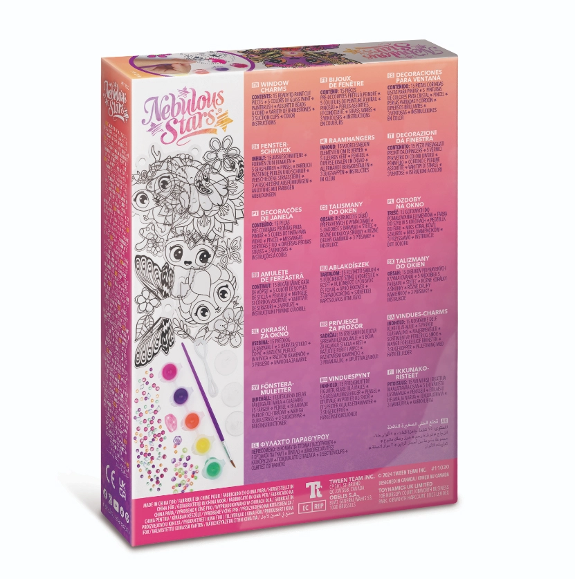 U pakiranju se nalazi sve potrebno – od predpripremljenih dijelova za bojanje do prijanjalica za lako pričvršćivanje na prozor. U kompletu su i upute te priče likova Nebulous Stars koje potiču na stvaranje.