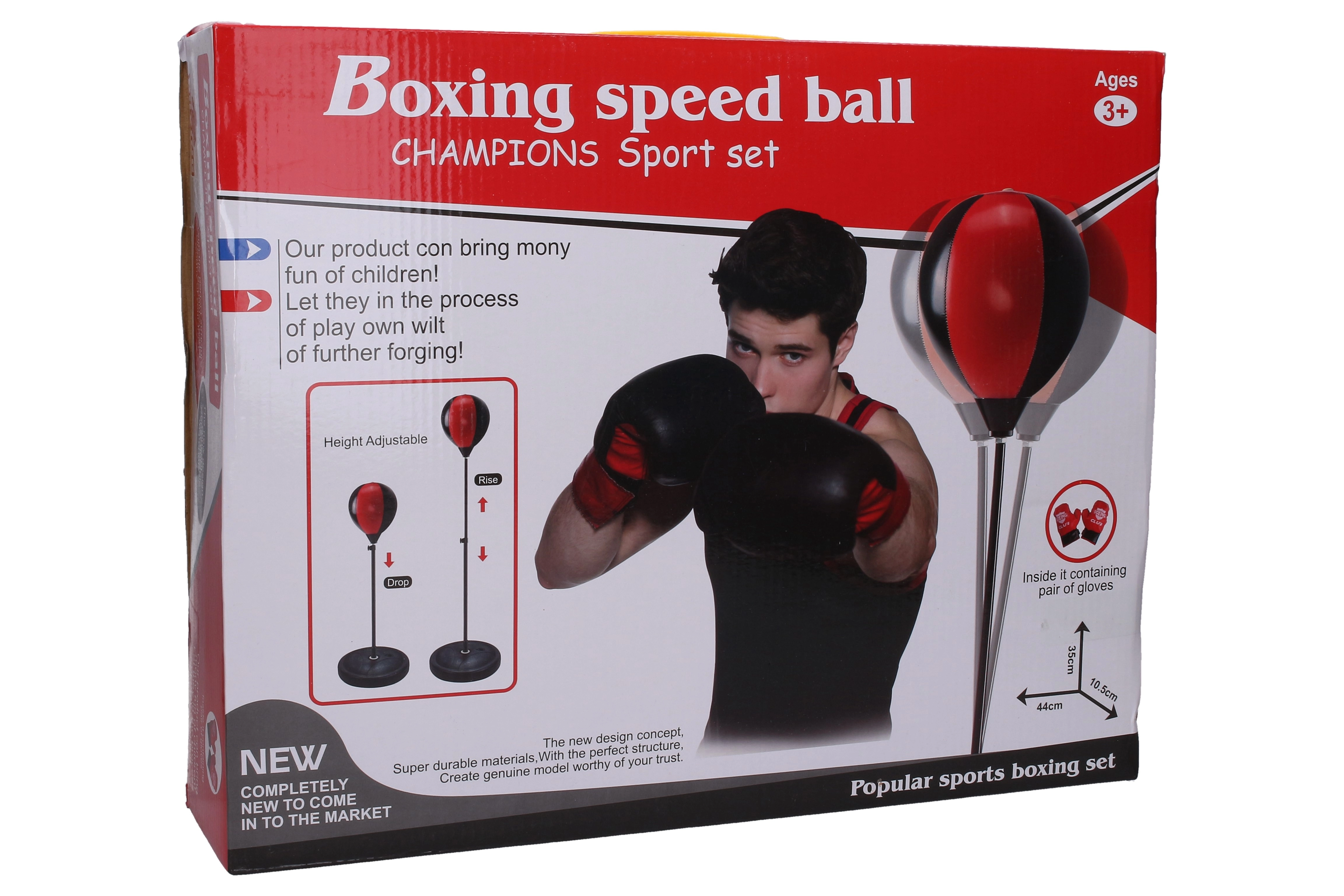 Ovaj praktičan boks set savršen je izbor za kućno vježbanje, razvoj brzine, preciznosti i koordinacije. Zahvaljujući podesivoj visini 69–109 cm lako se prilagođava djeci i odraslima. U pakiranju se nalaze bokserske rukavice, kompletna montažna garnitura i pumpica za brzo puštanje u rad.