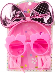 Ružičasti set modnih dodataka za djecu – traka za kosu s mašnom, naočale i gumice