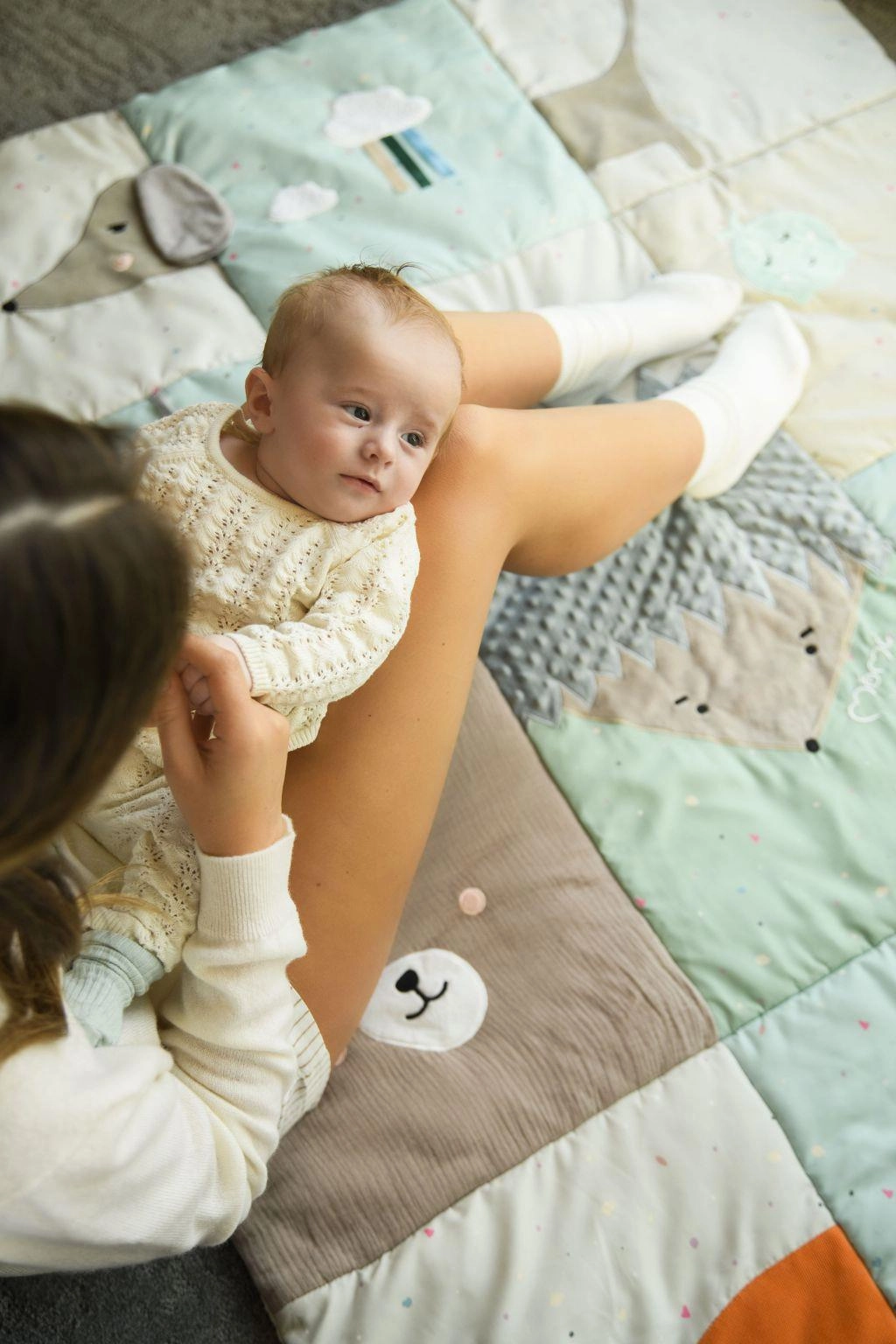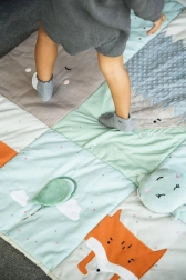 Igraća podloga MoMi VOLPI osmišljena je da raste s vašim djetetom – od prvog ležanja na trbuščiću do samostalne igre. Patchwork dizajn s raznim teksturama (minky, pliš, muslin, buklé) pruža bogatu senzornu stimulaciju i ugodnu udobnost. Zahvaljujući velikoj dimenziji 120 × 160 cm stvarate sigurnu i mekanu zonu za igru, odmor i istraživanje.