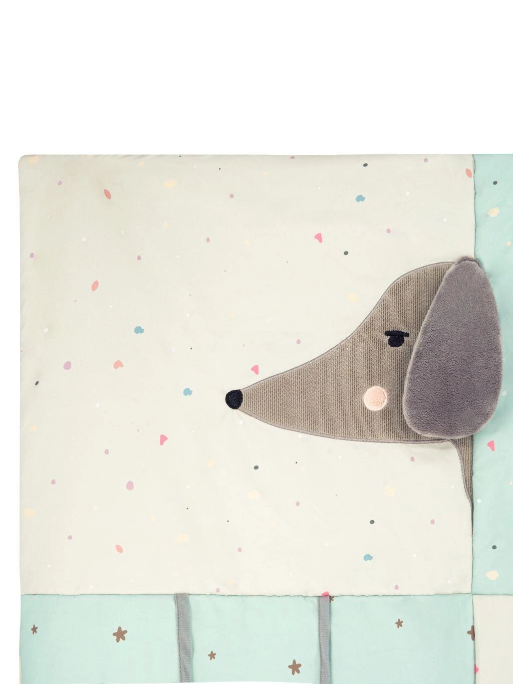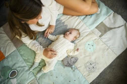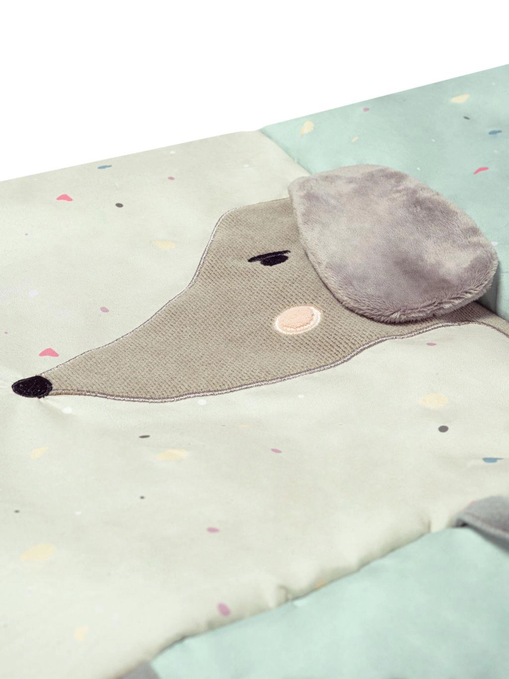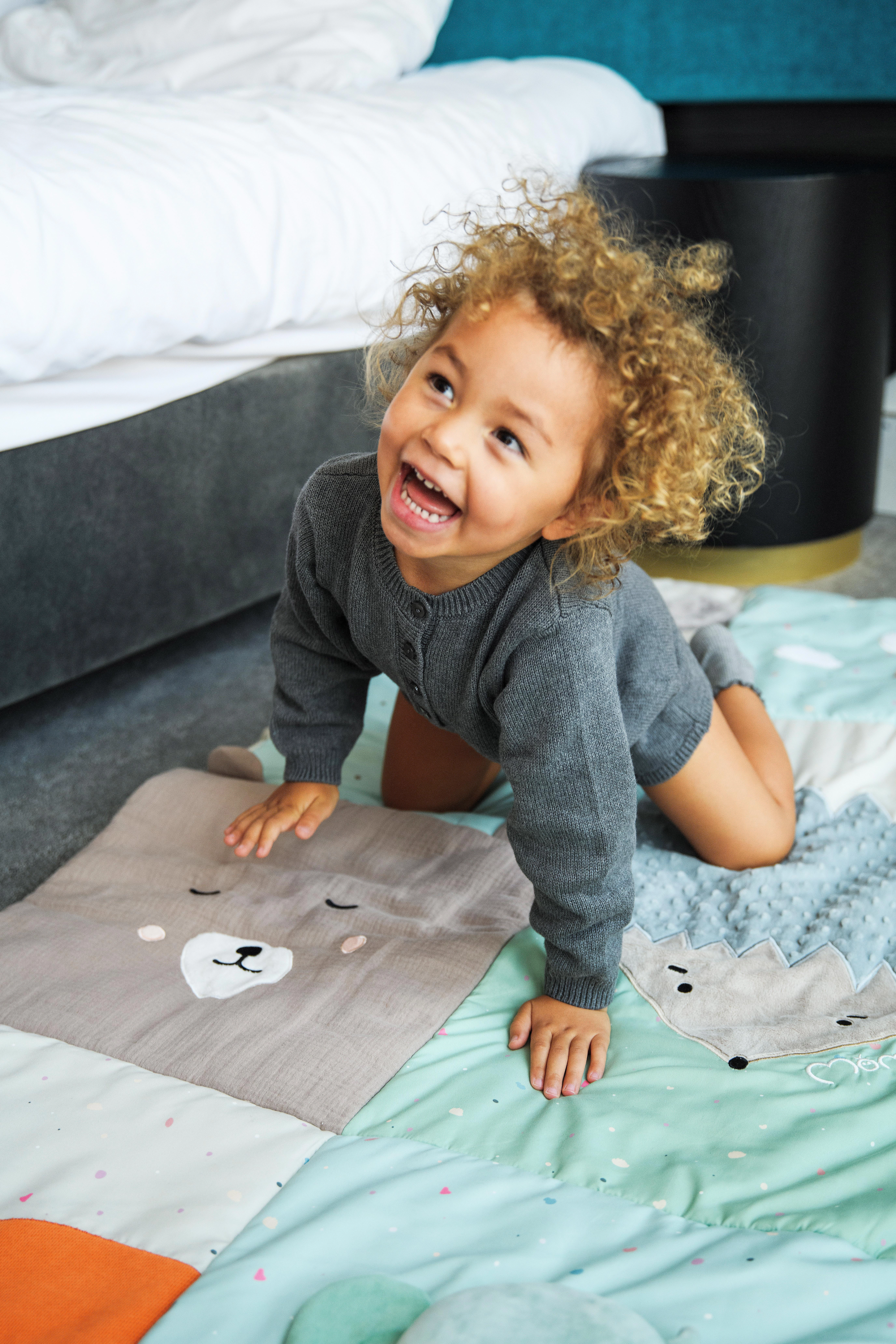 Prostrana, prošivena podloga stvara sigurno i udobno mjesto za vrijeme na trbuhu, puzanje i opuštanje – kod kuće i vani.