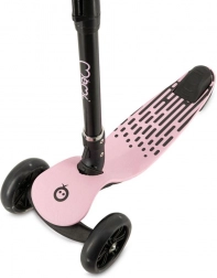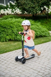 MoMi San idealan je prvi romobil za razvoj ravnoteže i samopouzdanja u vožnji. Trokota konstrukcija s dva prednja i jednim stražnjim kotačem osigurava izvrsnu stabilnost, dok široka protuklizna podnica i udobni gripovi doprinose sigurnom upravljanju. LED kotači svijetle tijekom vožnje te pružaju zabavu i bolju vidljivost.